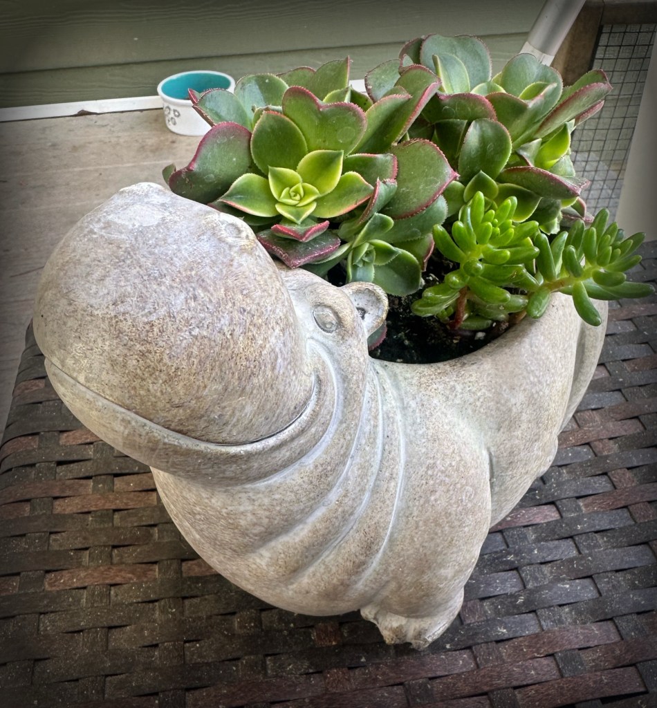 I have mentioned in the past, sometimes you have to create your own glimmer. Today’s offering meets that criteria. Meet the new side table topper on our back porch. Every time i look at this little planter it makes me smile. And that is exactly what a glimmer should do! It was quite a find at the garden center over the weekend. Makes me happy! A very happy Tuesday to you!