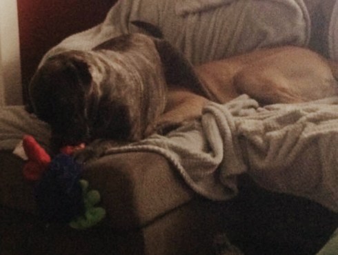 It seems Winston believes he has the right to enjoy playing with his toy without Maxwell taking it away from him. So…he sits on Maxwell’s head.