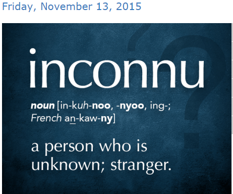 Happy Friday to you! It’s time once again for Dictionary.com’s Word of the Day and my own personal challenge to come up with a Haiku using the word! Today’s “Inconnu” is an interesting word that seems, at first glance, to have a split personality, but I happened upon the history behind the mystery!