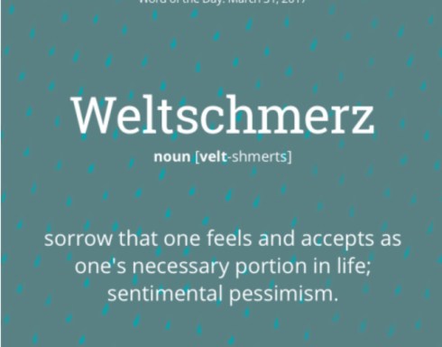Do you ever wonder if this is all there is? Weltschmerz is “the sorrow that one feels and accepts as one’s necessary portion in life.”