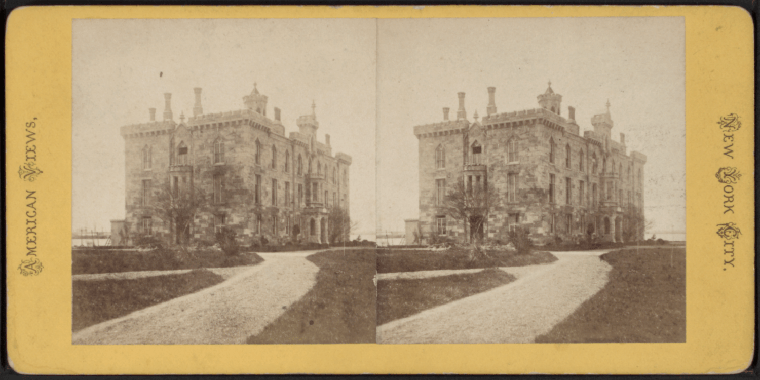 When I researched the photo, I discovered that this place is the modern-day view of the ruined remains of the Smallpox Hospital in New York City. Located on the southernmost tip of Roosevelt Island, formerly known as Blackwell Island, and surrounded on all sides by the East River, it was designed by architect James Renwick, Jr.
