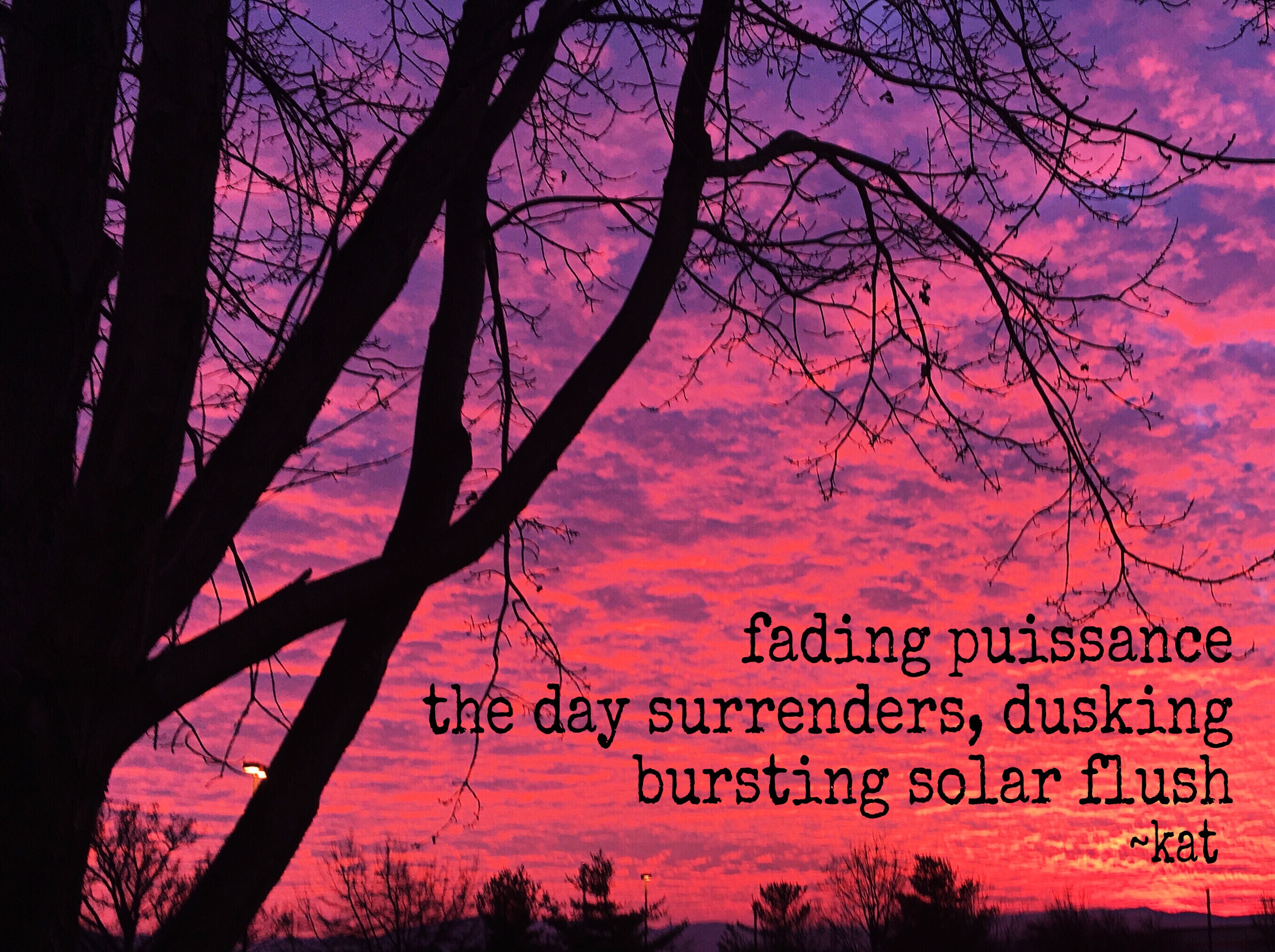 For Haiku Horizons Challenge, prompt word, fire. Tonight the brilliant sky cooperated with my muse. She knew I planned to tackle this Haiku prompt word. How serendipitous!