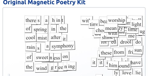 So, I love your magnet poetry. So much so that I am going to Amazon.com right now and getting these magnets. Great post. love it