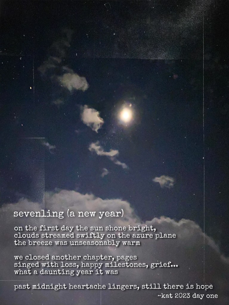 It seemed a good time to assess the past several weeks of verse by crafting a ReVerse. I had every intention of doing a sevenling daily in the new year for January…then work, duty, and caregiving got in the way. Still, it is a good start to a new year, one of which I am optimistically hopeful.