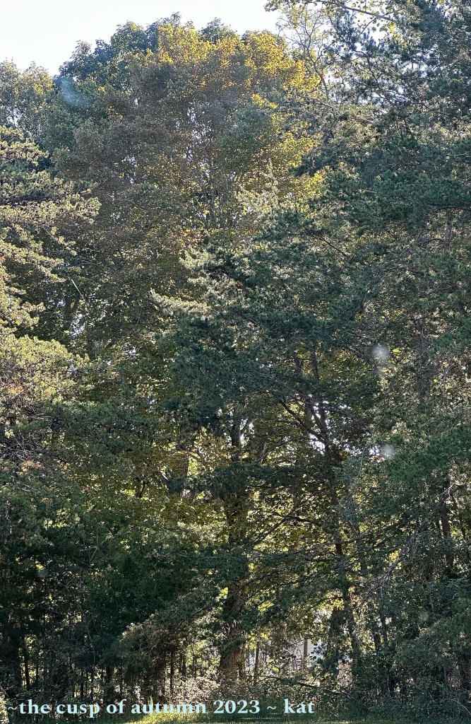 i can almost see the neighbors now their white-washed porch and blue metal roof, the brown-white marbled coats of their horses grazing along the perimeter, just beyond the thinning tree barrier between us trees still green with life, slowly fading, tip tops aglow in shades of amber and rust empty nests teetering like bristly blobs in the wind, nestled in nooks high above the bustle below at long last, autumn has settled in for a spell season of bonfires, apple cider, pumpkin spice, sweaters season of letting go, of gleaning what we’ve sown and offering what’s left back to the earth and sky I can see the neighbors now as the air grows chill as winter looms close and days grow dark as the veil grows thinner…thinner still it’s comforting you know, to remember that I am not…that we are never truly alone i see you…i see you