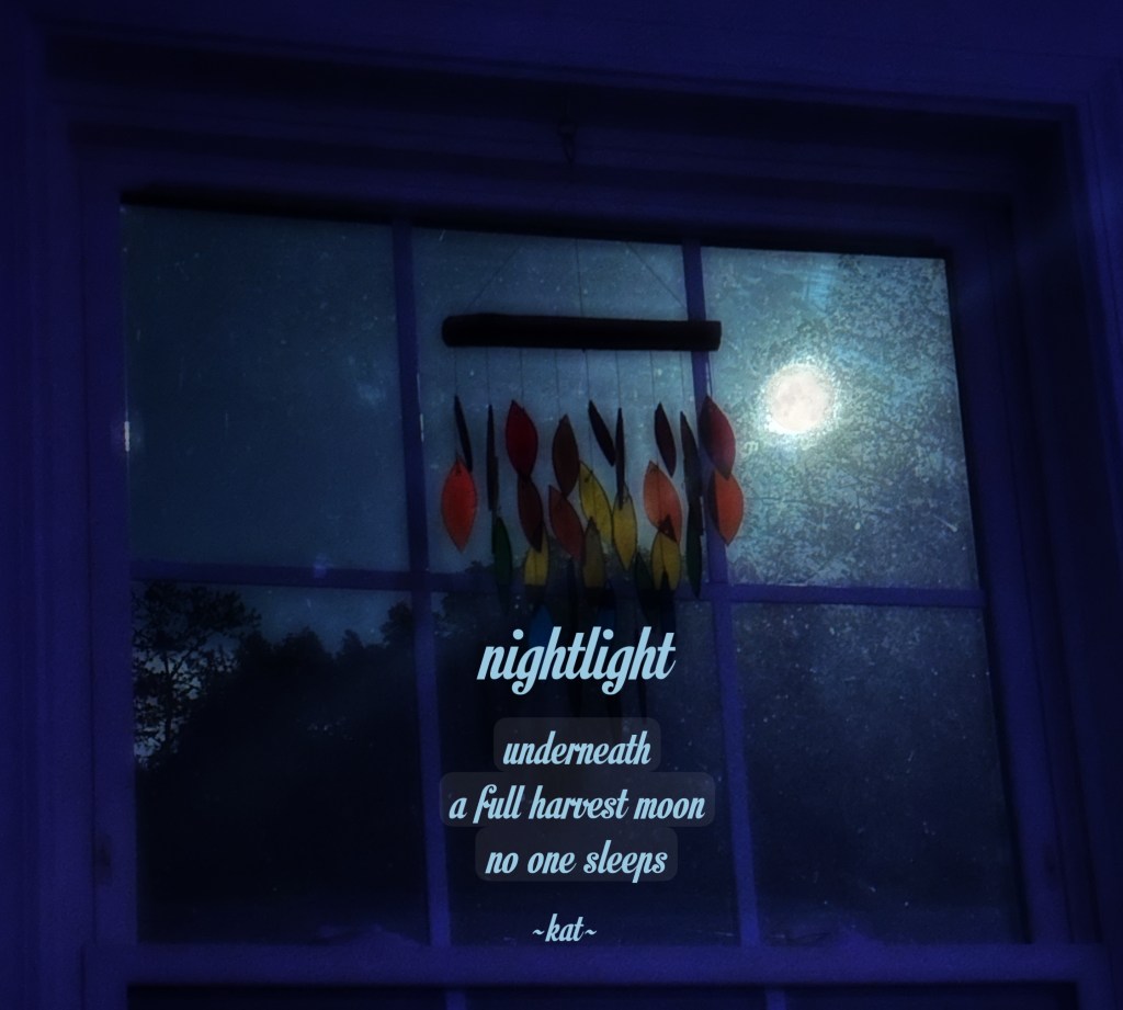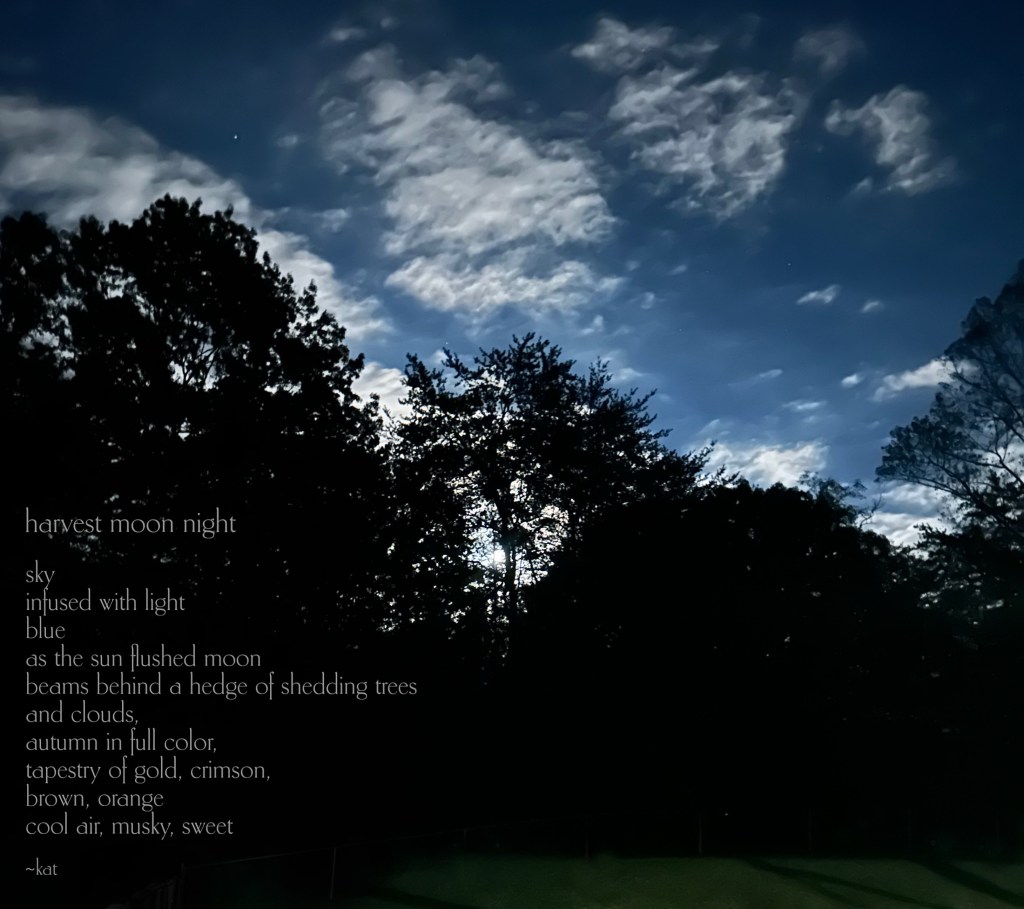 Tonight’s super harvest moon is the theme and glimmer of the day. I hope the clouds were few, giving you a glimpse of Luna’s full face.
