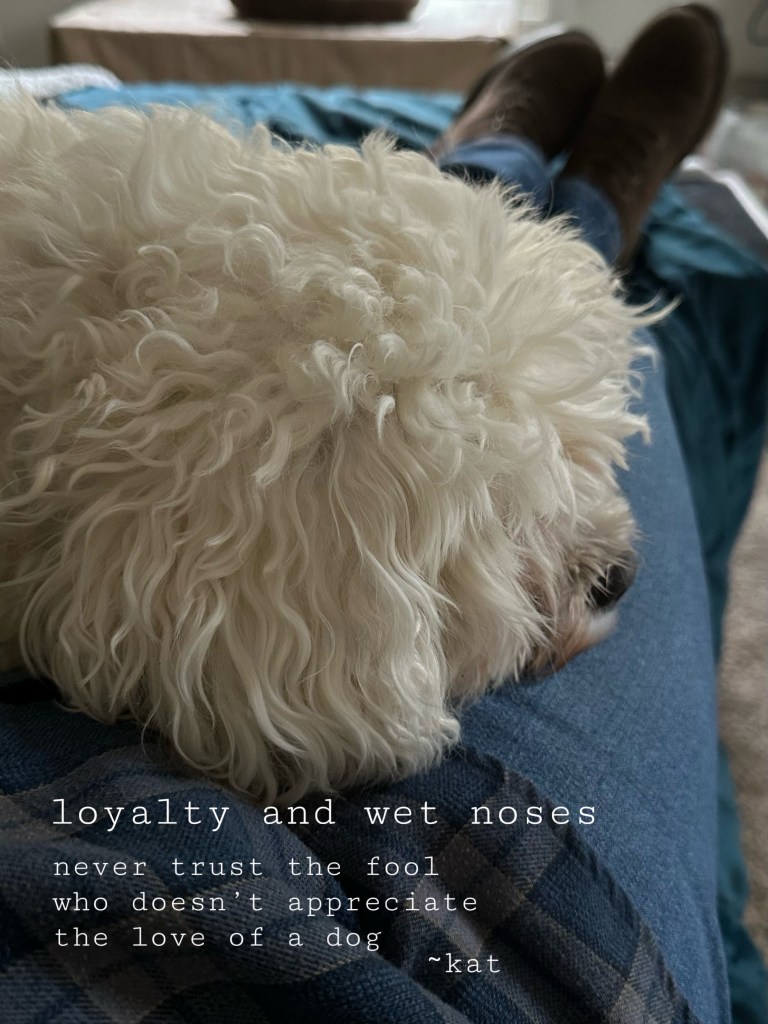 As promised, a proper glimmer. Busy day out and about…voted…did some shopping…got my COVID shot (while they’re still available! And now I’m taking a moment to take it all in, to call it a day. It was a good day actually. But the is nothing better than this…Gabby snoring on my lap as I rest my eyes a bit. Ending today on a glimmer. We don’t deserve dogs. I realize how blessed I am to have charge over this loyal little soul.
