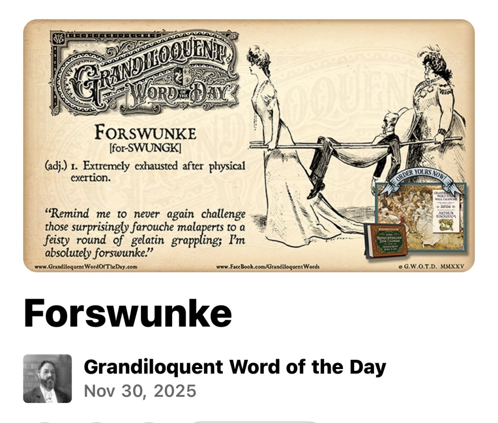 But getting everyone packed, loaded and unpacked is quite a job. And I am exhausted…or rather forswunke – Grandiloquent’s Word of the Day for today…how ever did they know?