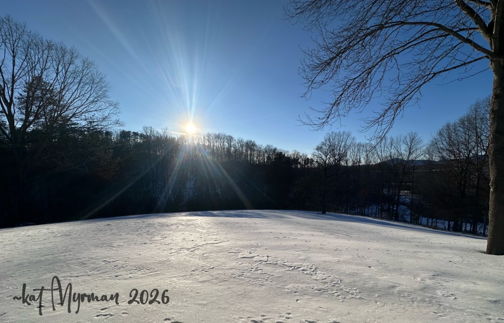 Celebrating a second glimmer today. Isn’t it beautiful! The sound of snow melting in harmony with the breeze; an occasional solo by a passing crow. I needed to see…I needed to feel the sun today. Mother Nature never fails.
