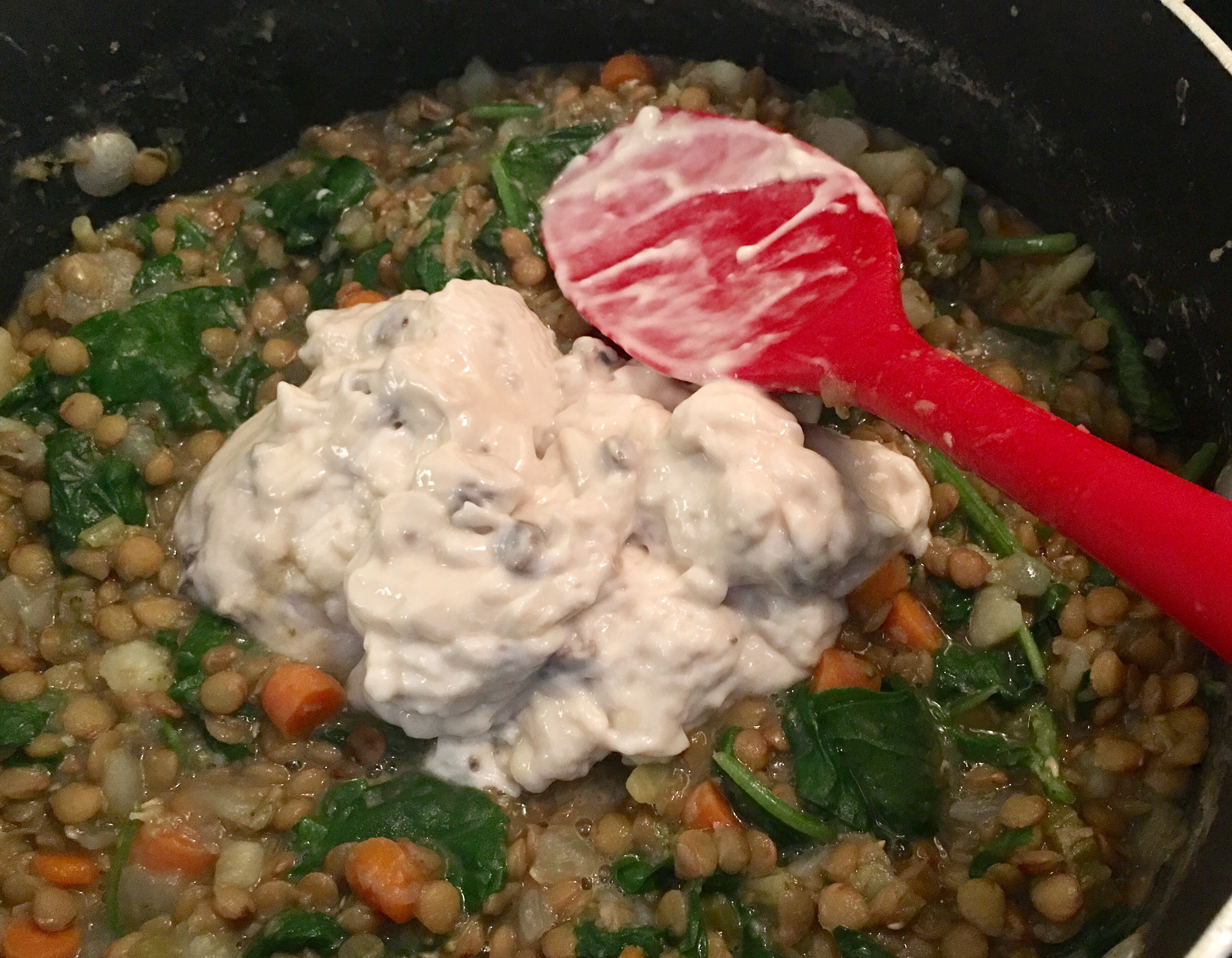 To that mixture add warm milk and marshmallow creme and whip until sugar dissolves. (You can also add food coloring for a festive flair.)
