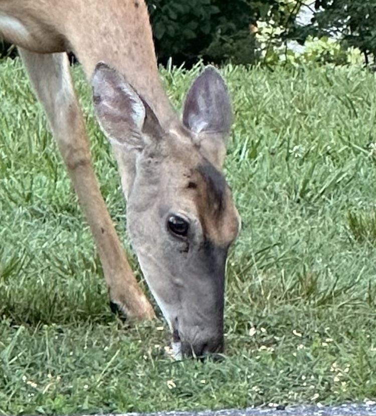 The day started like it usually does. A perfect summer morning. A bit of a breeze, which is always fragrant this time of year. This morning I detected a hint of honeysuckle. One of my deer friends came by to say good morning, so a tossed her a bit of corn to munch on. I had some errands to run…before settling in for a little cat nap.