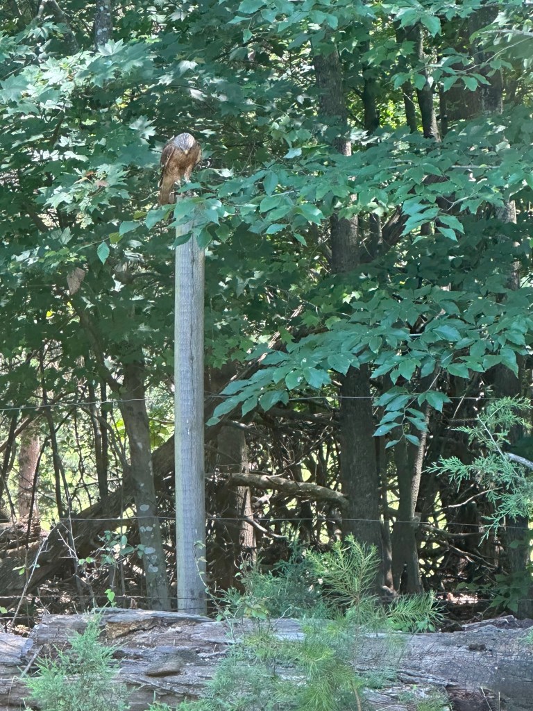 The hawk, though his shadow from above scattered the smaller critters here in the woods, he was not being hateful or vindictive, or even monstrous. He just had an empty belly to fill, and the felled tree trunk beneath him just happened to be home to several smaller rodent-types. Field mice and chipmunks, snakes and lizards. I know he has harvested birds on occasion…the splattering of feathers is a dead giveaway.