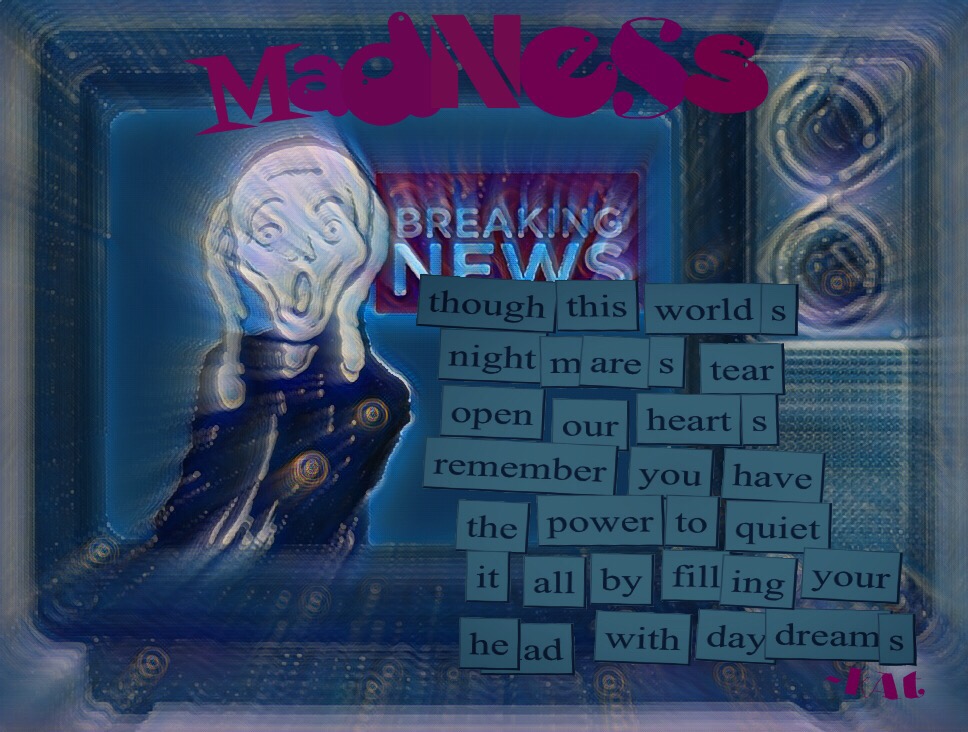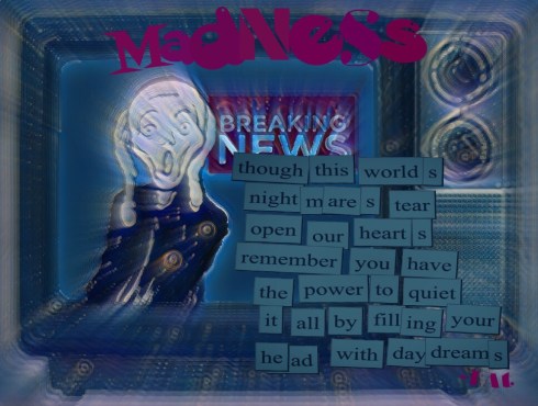 A cinquain for Colleen Chesebro’s Tanka Tuesday Poetry Challenge, synonyms only for the words, fantasy (daydreams, utopia) and merry (rollicking, mirth, mad).