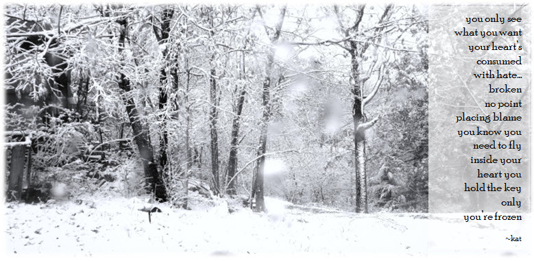you only see what you want your heart’s consumed with hate… broken no point placing blame you know you need to fly inside your heart you hold the key only you’re frozen