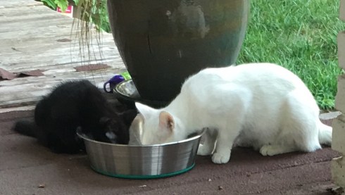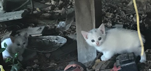 When we got under the porch we realized we had quite a challenge. The previous owners of this house had dumped the former porch planks underneath the existing one and we discovered a series of tunnels, dug, we suspect, by a ground hog or some other sizable burrowing critter. Thanks to the help of our neighbors we were able to save three kittens from the dangerous maze under our house and get them safely inside. The mother cat of course darted straight away in all the commotion and one kitten eluded us. It is bittersweet. My heart breaks that we couldn’t save them all in one grand effort. We will continue to feed mama cat every morning and night. She wanders several houses down after filling her belly. We suspect she has the fourth kitty stowed away somewhere else. At least we hope so, and we hope also that she sees fit to bring it back with her at a future date. There is nothing we would like more than to reunite this little family, care for them and find them loving forever homes.