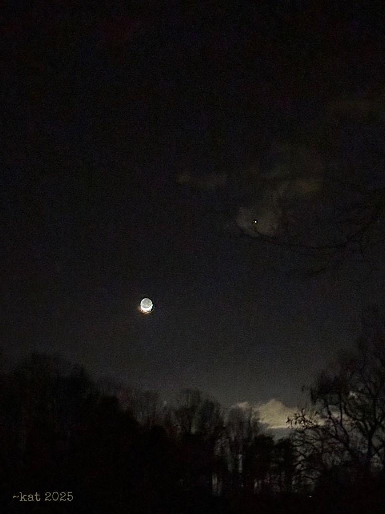 A bright crescent Moon dancing with Venus ~ kat 2025