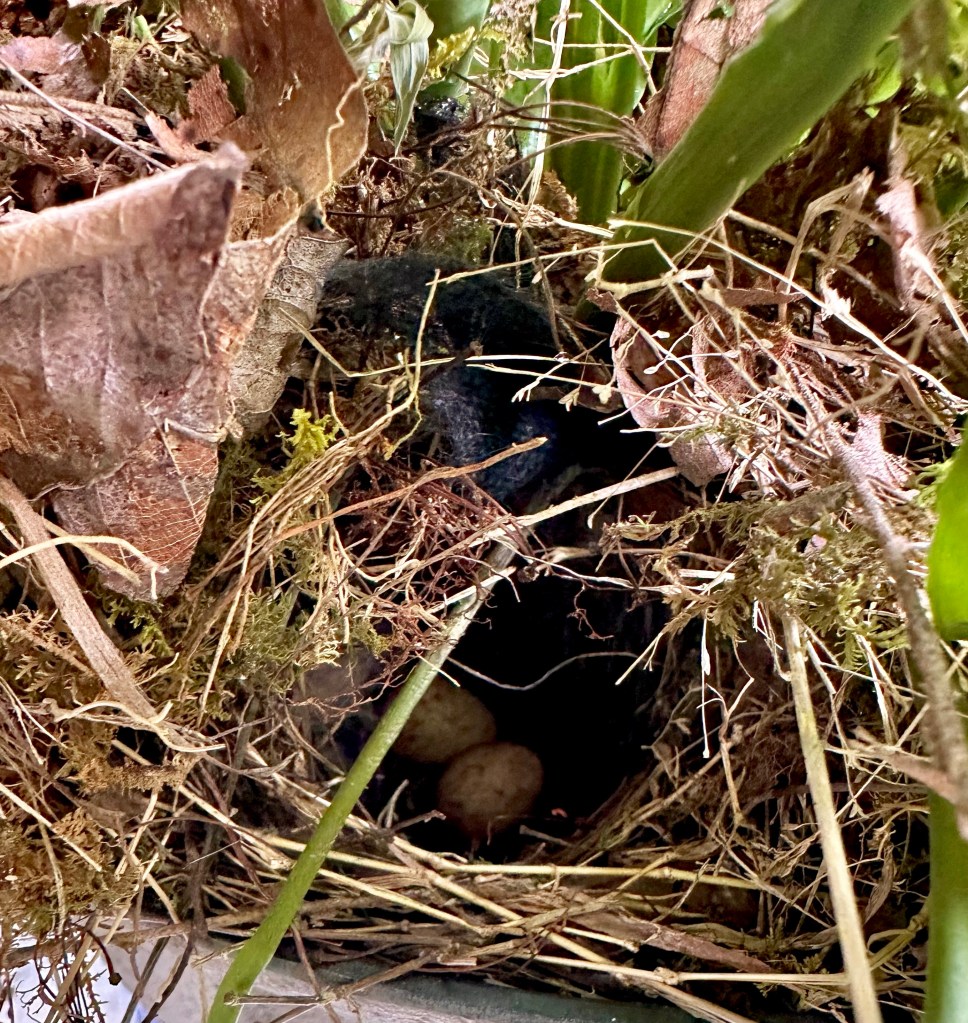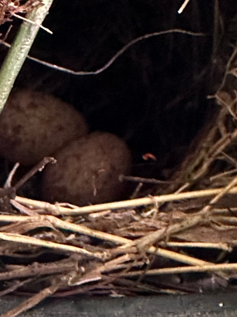 Oh, and before I send this…an update on the Carolina Wren brood…it’s been one week since they emerged from their shells! Mom and dad have been stellar parents providing the chicks with plenty of bugs (it’s what’s on the menu). I managed to get a peak into the nest. We’re thinking four…maybe five hungry mouths to feed. One more week before they fledge… amazing!!!