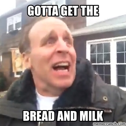 So…true story. I live in a mid-Atlantic state. When the weather forecasters utter the “s” words, snow…sleet…people here panic. Now I grew up in Chicago and it’s suburbs, so I’m not used to this sort of thing. We learned how to drive in the stuff as teenagers. Not here. The prospect of an inch or two of snow followed by freezing rain and plummeting temperatures causes all manner of mayhem. Schools and businesses close. Store shelves are depleted of milk and bread and if you happen to be at work when the stuff starts coming down there is a steady shuffle to the parking lot to get home before it gets bad. I know, because my cubicle is situated at the exit door.