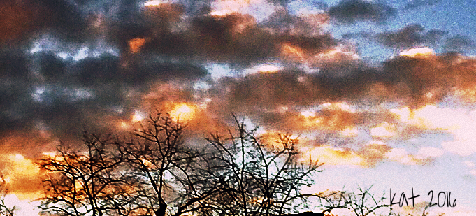 Started my day waking up to this beautiful sky, tree tops, a hint of green, popping with buds, spring on the cusp. I fully intended to write a fancy poem about it…
