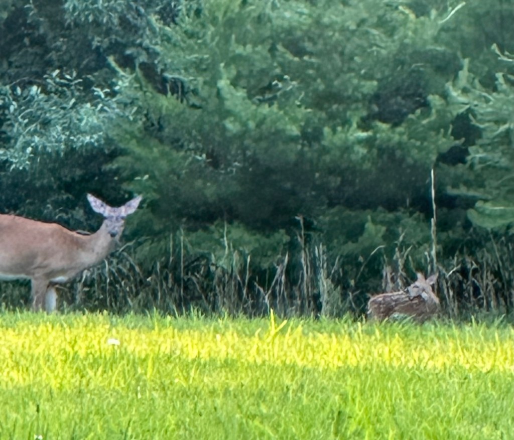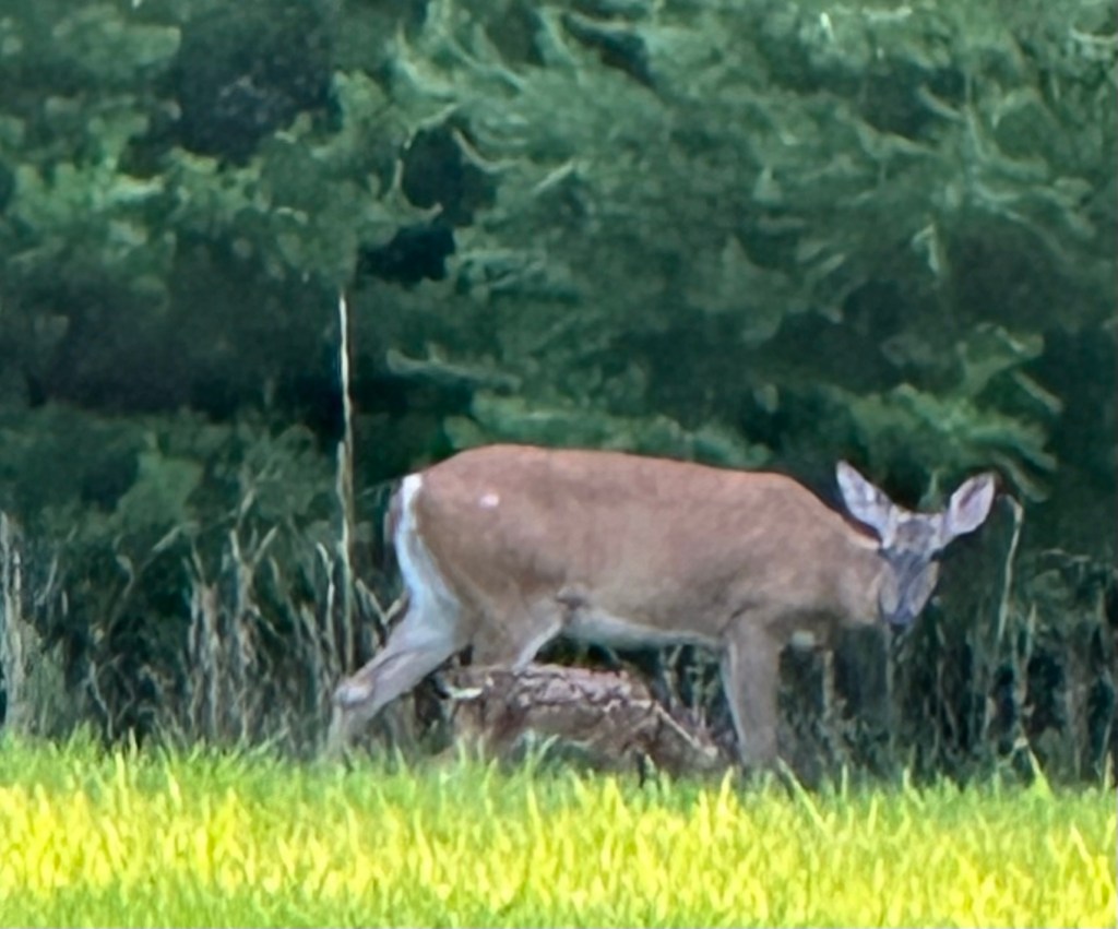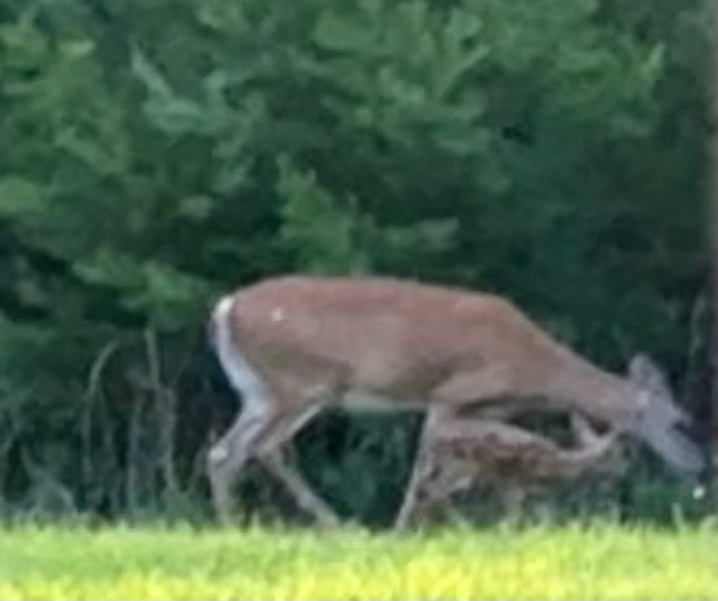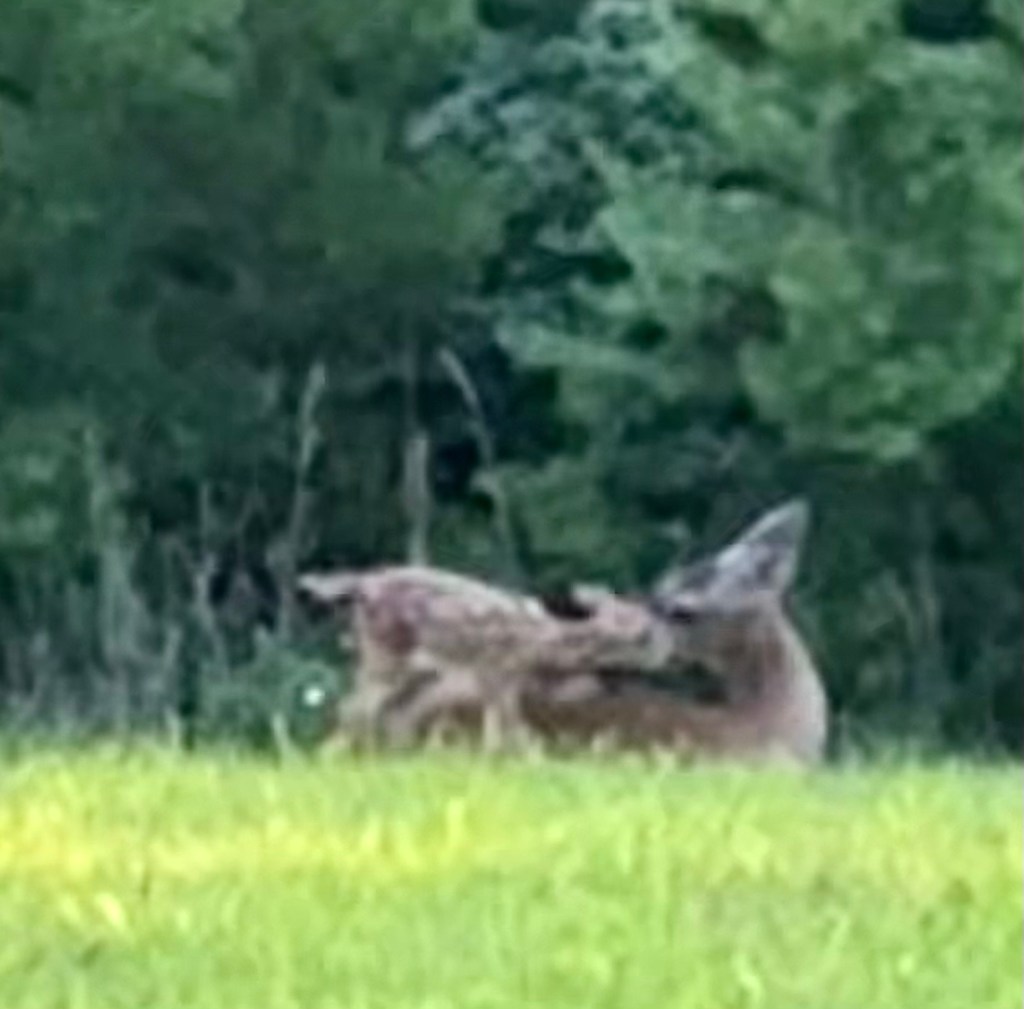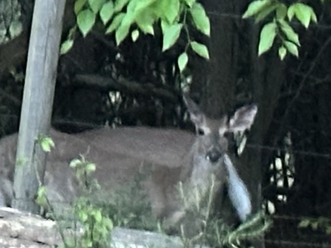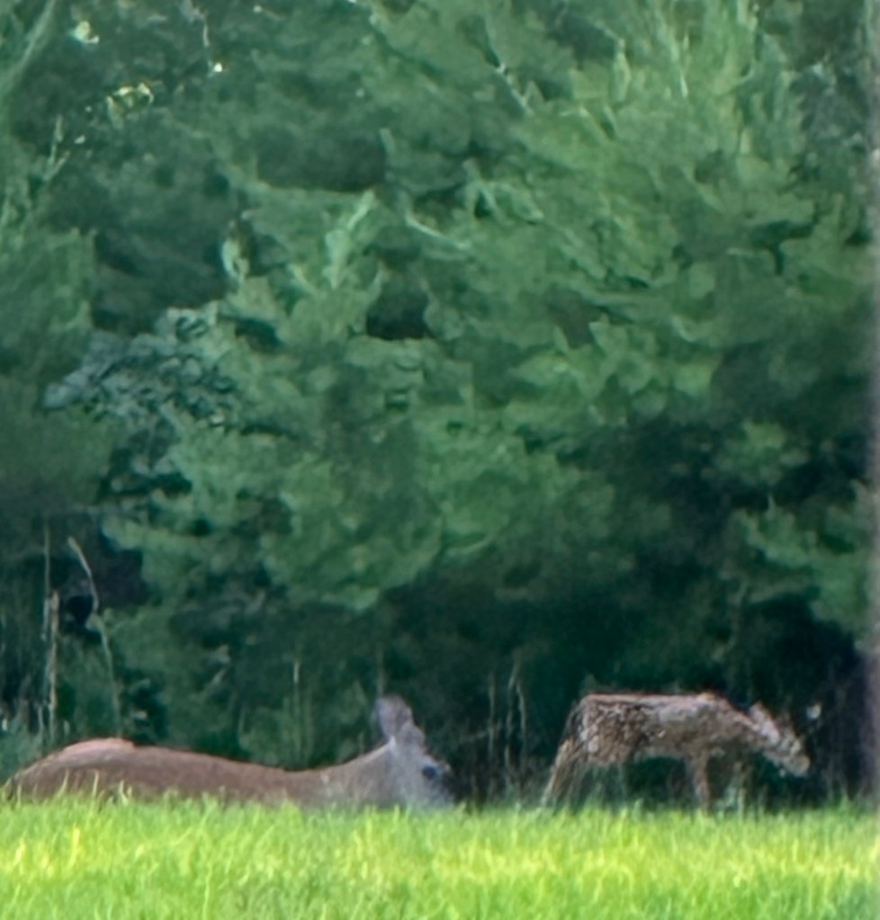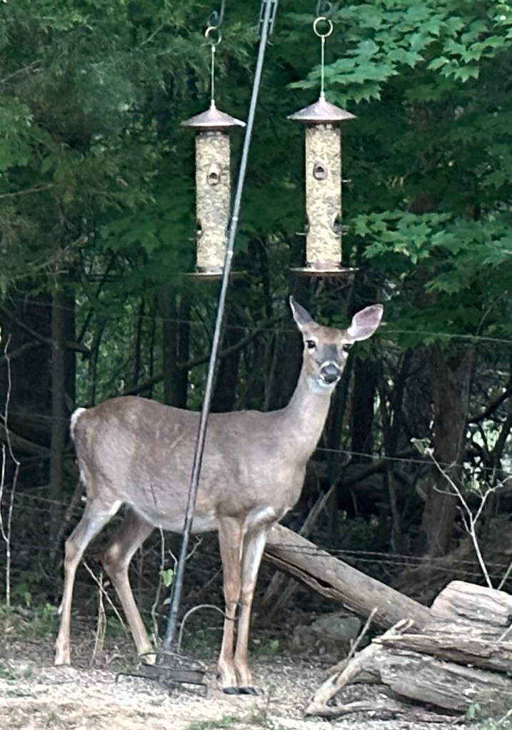 Sometimes days are just perfect. Today was one of those days. Got some positive news at work, and happened upon several new little families. The woods were bursting with life events while we were away. A phoebe family hatched their brood, and several deer had young. I saw several doe with young while driving to the store. A set of twin fawns, and two singletons with their doting mamas. This evening I was visited by one of the does that frequents my feeders. She watched me from the brush for several minutes before deciding I was safe. I was trusted to meet her fawn. And this time I did happen to have my phone on me and caught my visitors in photos. I hope this post finds you well. Enjoy the glimmers below. I’m such a sucker for a babies of any species!