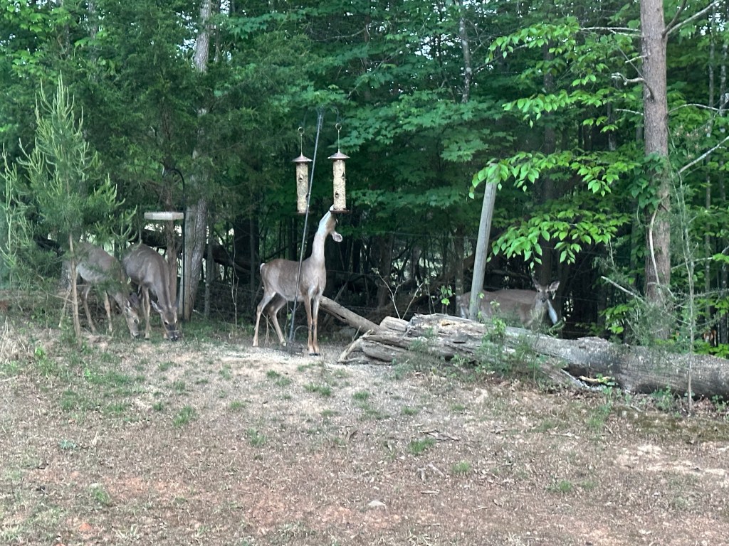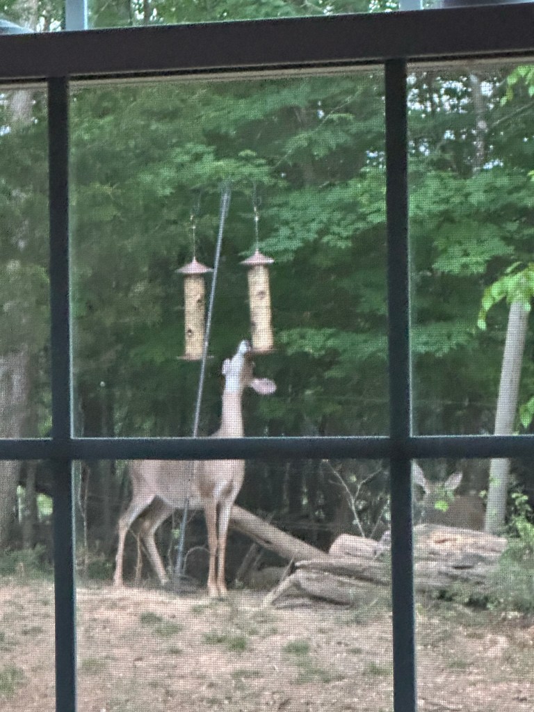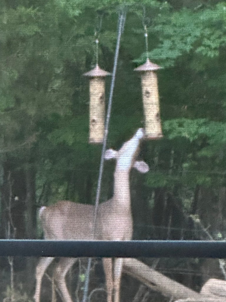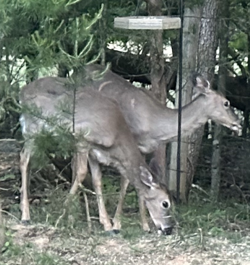 And then came the birds and the deer to partake of the snacks I had left for them. The deer seemed particularly joyful. Running around, the young ones playing with each other. The doe are growing fat around the middle. Fawn season is a month or less away. I watched them for several minutes and picture them here. Seeing them was just what I needed…a reminder that life goes on, even in the aftermath of death. A glimmer…🥰