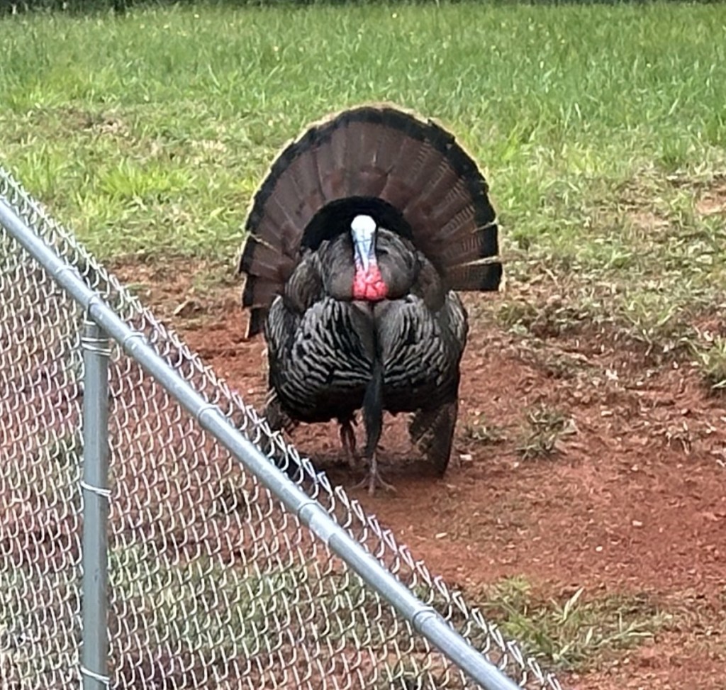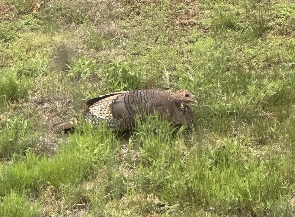 And one more thing…the turkeys stopped by. Mama hen and chick too! That baby is growing taller, her feathers are filling in and she is a riot, running circles around the hens! Did my heart good to see them thriving. ✨💚✨