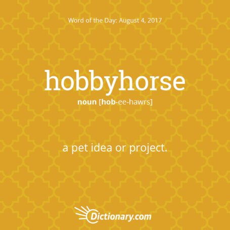 Is it just me or does the term hobbyhorse sound a bit redundant? Basically one is saying horse (hobby) horse. But I digress.
